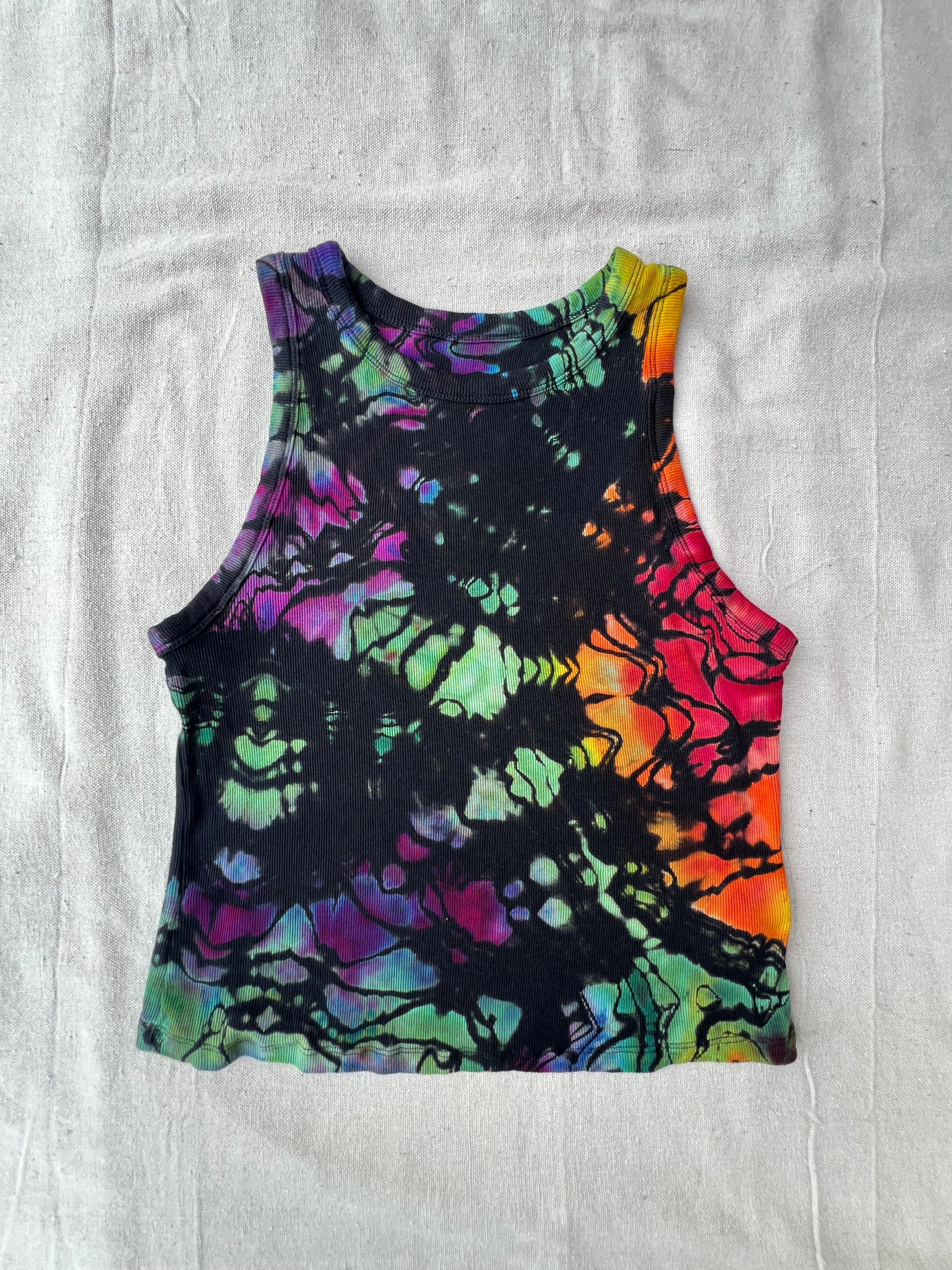 L women's rainbow geode reverse dyed cropped tank top