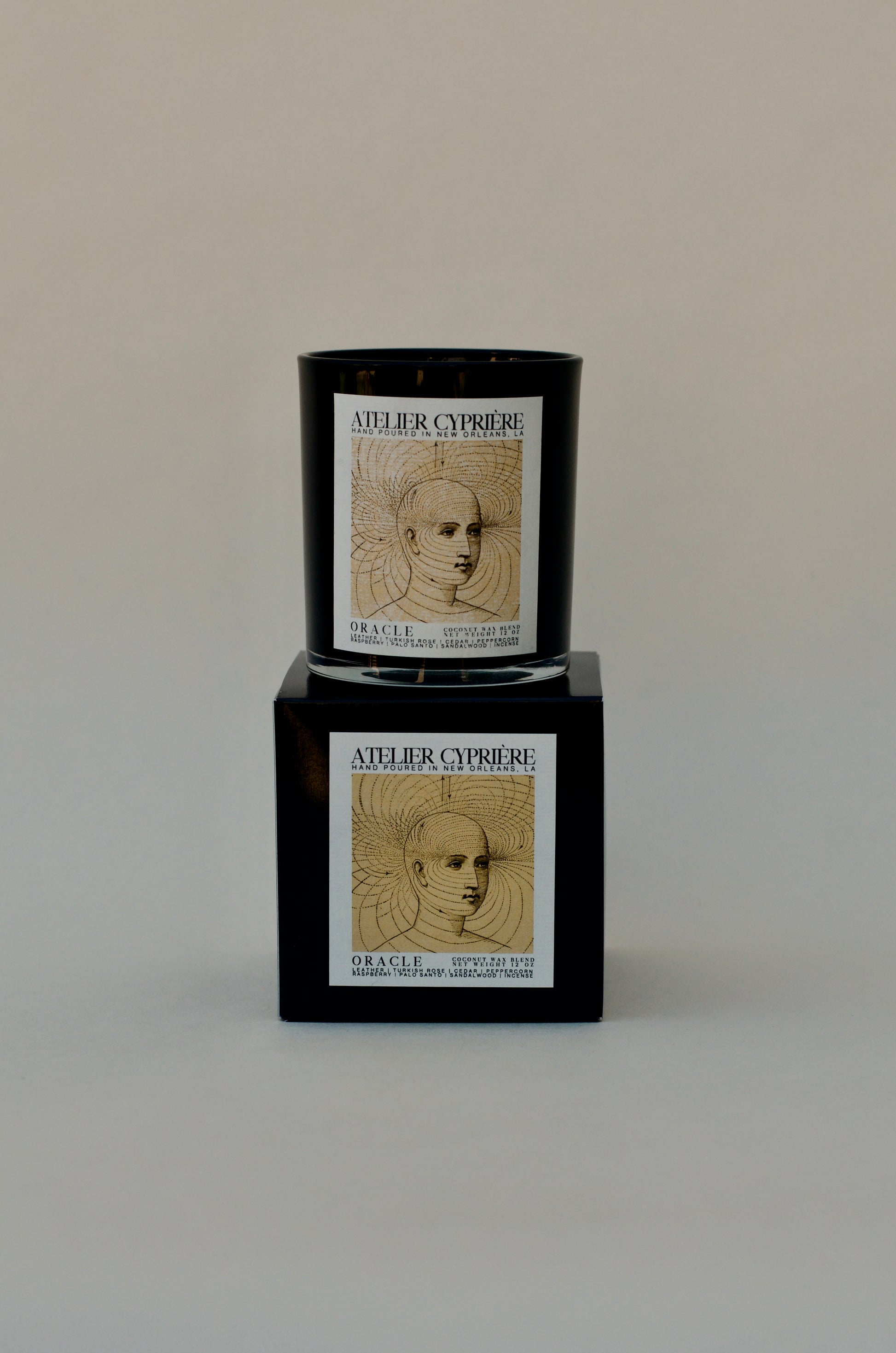 Oracle opens with leather and Turkish rose, their deep richness softened by the woody warmth of cedar and a hint of peppercorn's bite. Sweet raspberry brightens the blend while palo santo adds its distinctive smoky edge. Sandalwood brings creamy depth, and incense finishes with its time-honored resinous warmth, creating a scent both grounding and transcendent.