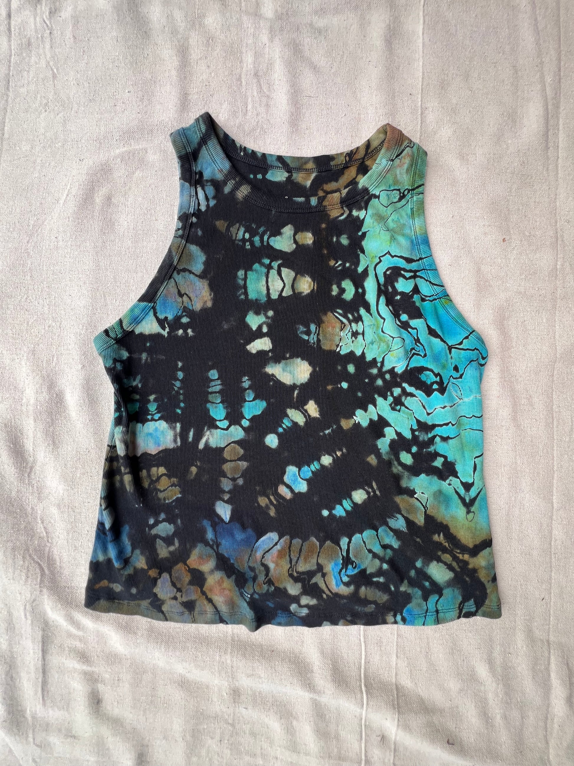 XXL women's lagoon geode reverse dyed cropped tank top